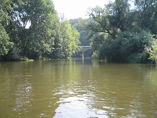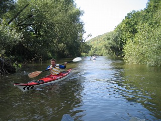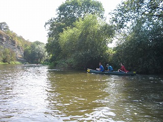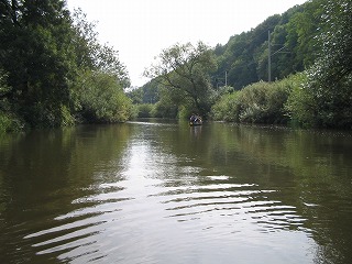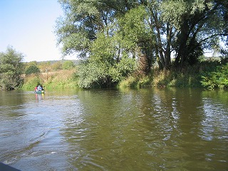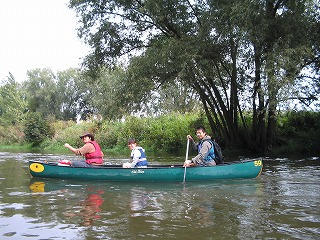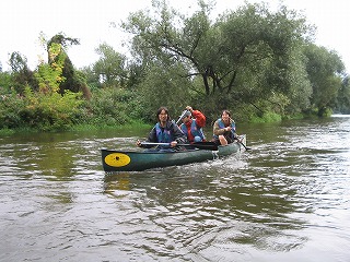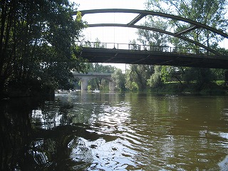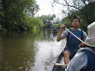 ってな感じでした。 えー、実際はもっとあっという間だったのですが、かなり太めの木の枝なのか幹なのか今となってはわからないのですが、カヌーの舳先が突っ込み、それをよけるように皆が左に倒れ、重心がくずれてからはカヌーはいとも簡単にくるっとひっくり返りました。 前にいたFhiと後ろにいたけんちゃんはほりなげられたのですが、真中にのっていたカナちゃんはなぜかカヌーの下に。。。。 この三人のりのカナディアンカヌー、水のなかで泳ぎながらひっくり返すにはかなりの重さ、なんとかカヌーを持ち上げカナちゃんが脱出。 なんせかなちゃん泳げません、けんちゃんがつれて岸に向かったのですが。。。。 ひとりながれていくカヌーとその他もろもろの浮いている備品、これ、ひとりでどうすりゃいいんだ。。。 左手にカヌー(ひっくりがえったまま)、右手にパドル二本(一本どこいった?)をもち、なんとか岸に向かいました。と、ここで、自分が帽子をかぶってない事にき気づき、探せどもない。。。。。ああ、帽子。。。。 なんとか岸に泳ぎ着き(Fhiはおよぎ達者です。太寺スイミングスクールに通ってました)、カヌーをわっせとひっくり返す。おおー、帽子発見! すこしおちつき、状況を把握して、怪我が無いかを調べました。うん、みんななんとか大丈夫、怪我もなくて、携帯もない。。。。。え、ポケットにはいってた携帯電話が。。。。。うぉー。 もう一台のカヌーにのった三人が流れをさかのぼり、戻ってきてくれました。 あれほど濡れるかもしれないよと事前通達していたのですが、着替えをもってきていたのはFhiだけ、とりあえずFhiの着替えをカナちゃんにかしてあげ、カヌーの中に溜まった水を抜き、気を取り直し出発です。 この後、しばらくの間皆無言でした。。。。。。。そして、もう一台のカヌーの人たちは、気のせいか僕らとは距離を取っているようにも見える。。。。 なんとかおちつきを取り戻し先を進んでいたのですが、川くだりを楽しむというより、なんとかゴールにつきたいといちがんとなってもくもくとこぎつづけるだけになてちました。 途中、カヌーをおり、持って運ばなければいけない関になっているとこが2かしょ。水泳したあとに陸に上がったときの脱力感というか、体重が増えたような感覚ににたようなものを感じながら、えんやこらとカヌーを運んでいました。 途中のBad Koesenという町ではすこし長めの休憩としてアイスクリームを食べました。この町は塩の精製で栄えた町でもあるらしく、ものものしい設備が今もまだ健在でした。ただ、どこがどのような機能をはたしているのかまったくわからなかったので、また今度の機会に詳しくレポートしたいと思います。 天気が多少崩れ気味ながらも、沈没から後は何事も無く突き進み、やれやれゴールが見えてきました。このカーブを曲がればゴールだー!と思うとパドルをこぐ手に自然と力がはいりました。 予定していた4時には到底帰りきらなかったのですが、リミットの6時にぎりぎりセーフ、やれやれ、なんとかなりましたとカナちゃん、けんちゃんと喜び、終わりよければと楽しかった道中を振り返りながらカヌーを陸に引き上げ、返却の為に掃除を始めました。 と、待てど暮らせど他の三人がのったカヌーが戻ってこない。つぎつぎとゴールインしてくる人に日本人3人乗ったカヌーを見なかったかときいても、皆見なかったと答えるだけ。 もう一台の三人、ゴール直前で藪につっこみひっくり返っていたようです。 カヌーを引き上げ、掃除をしているときに、カヌーのレンタル屋さんに樽をなくしたことを伝えると、幸運にもだれかがひろって届けてくれていたようです。樽のふたがちゃんとしまってなかったようで、中は水浸し。それでも財布からかばんあで全て失うよりはましだったでしょう。とにかく誰にも怪我がなくよかったです。 カヌーをしっかり掃除して、それを返却。なくした地図や掃除用のすぽんじは多めに見ていただけ、とりあえず無事終了。 | |