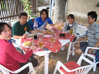 と、ここで今回参加者の紹介。左からじゅんやさん、Fhi、かなちゃん、けんちゃん、んで右がかんじさん、って、Kばっかりです。写真をとってくれているのが西からはるばるおいでくださったのぶちゃんです。 のぶちゃんの写真はまた途中で出てくると思います。 | |